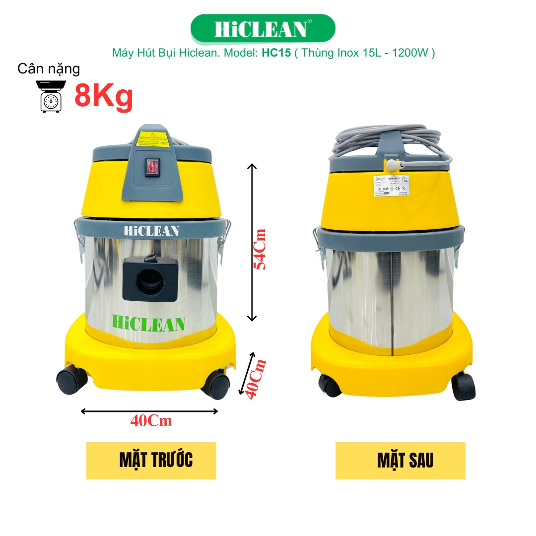 Với công suất 1200W, lưu lượng khí đạt 90L/S và dung tích thùng chứa lên tới 15L, máy hút bụi công nghiệp HiClean HC15 có khả năng hút sạch mọi loại bụi, phấn hoa, cặn bã, tóc và cả các chất lỏng. Đặc biệt, sản phẩm được trang bị motor 100% lõi đồng của Italy, giúp tăng khả năng hút và độ bền sản phẩm lên tới nhiều năm sử dụng.