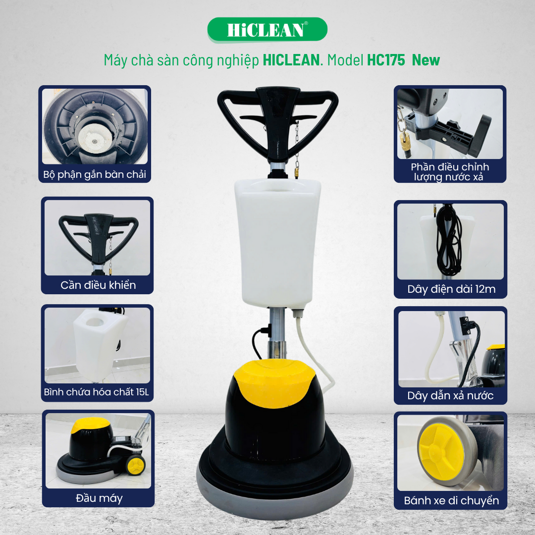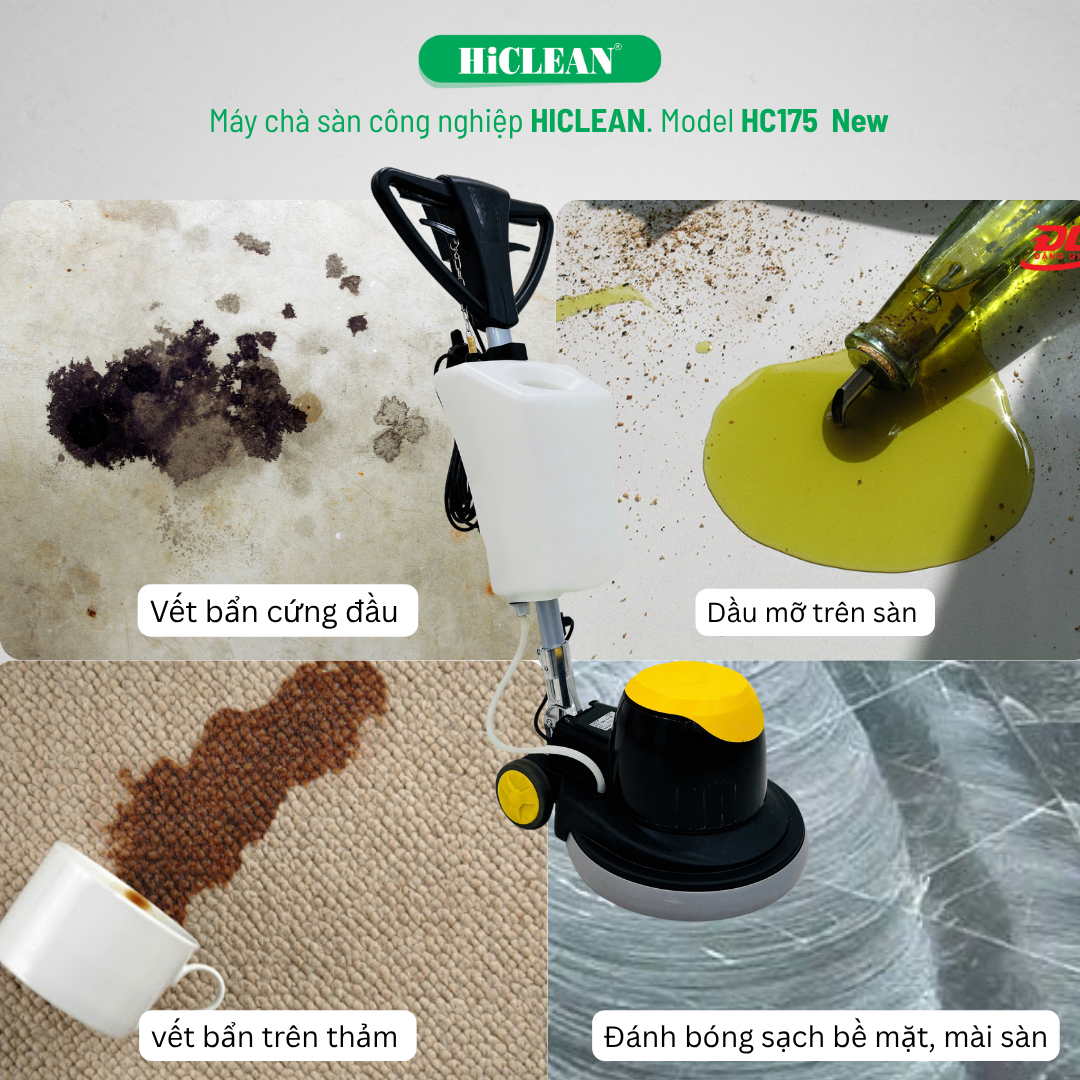 Máy chà sàn đơn HiClean HC175 NEW - Giải pháp chuyên nghiệp cho việc đánh bóng và giặt thảm