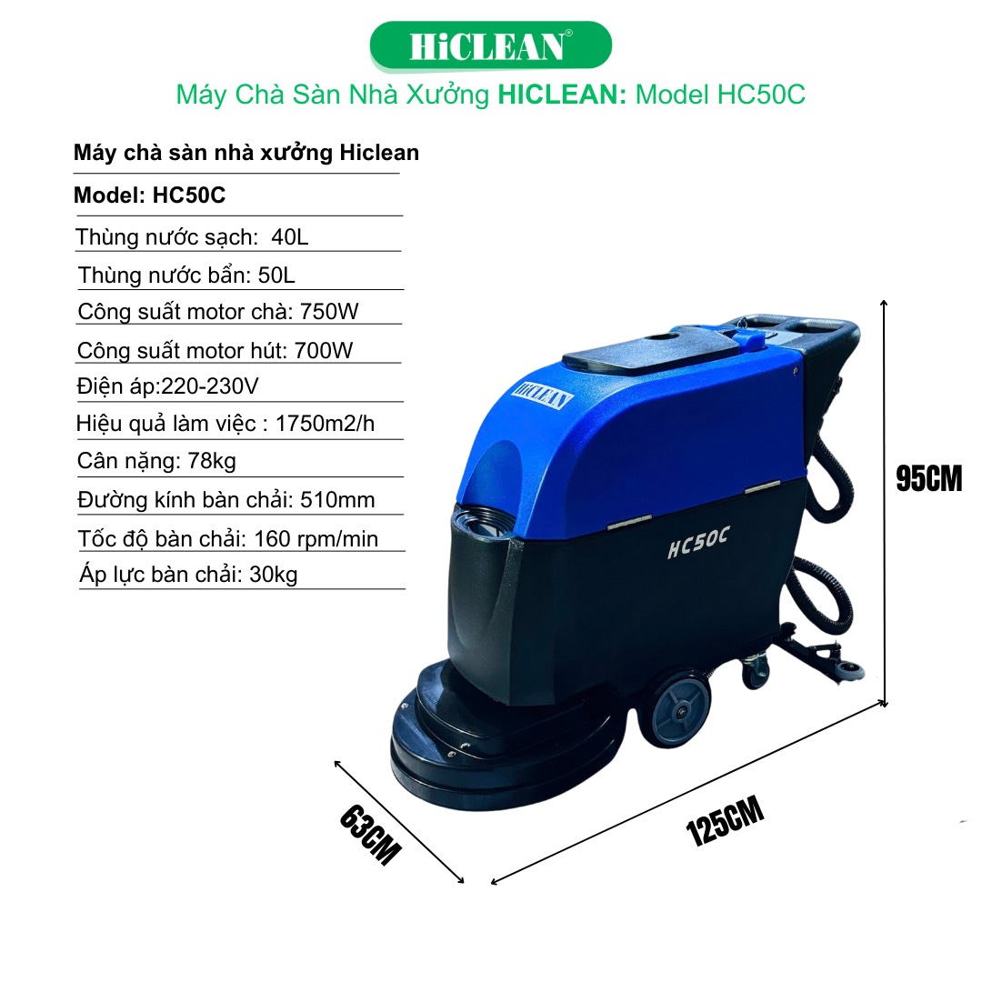 Máy Chà Sàn Liên Hợp HiClean HC 50C - Công Suất Mạnh Mẽ, Làm Sạch Hiệu Quả, Tiết Kiệm Thời Gian
