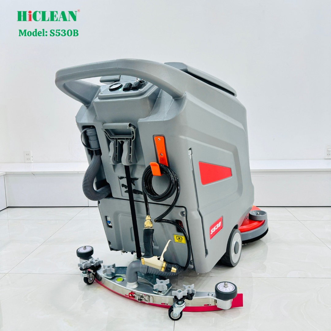 Một trong những ưu điểm vượt trội của HiClean S530B là khả năng di chuyển linh hoạt và hoàn toàn không dây. Được trang bị bình ắc quy 24V/120Ah , máy có thể hoạt động liên tục trong khoảng 4 đến 5 giờ , cho phép người dùng tự do di chuyển và làm sạch ở những khu vực rộng lớn mà không bị giới hạn bởi dây điện. Điều này không chỉ tăng cường hiệu quả làm việc mà còn đảm bảo an toàn cho người vận hành và những người xung quanh, loại bỏ nguy cơ vấp ngã do dây điện gây ra. Tính năng này đặc biệt hữu ích trong các môi trường có nhiều chướng ngại vật hoặc cần di chuyển liên tục giữa các khu vực làm việc khác nhau.
