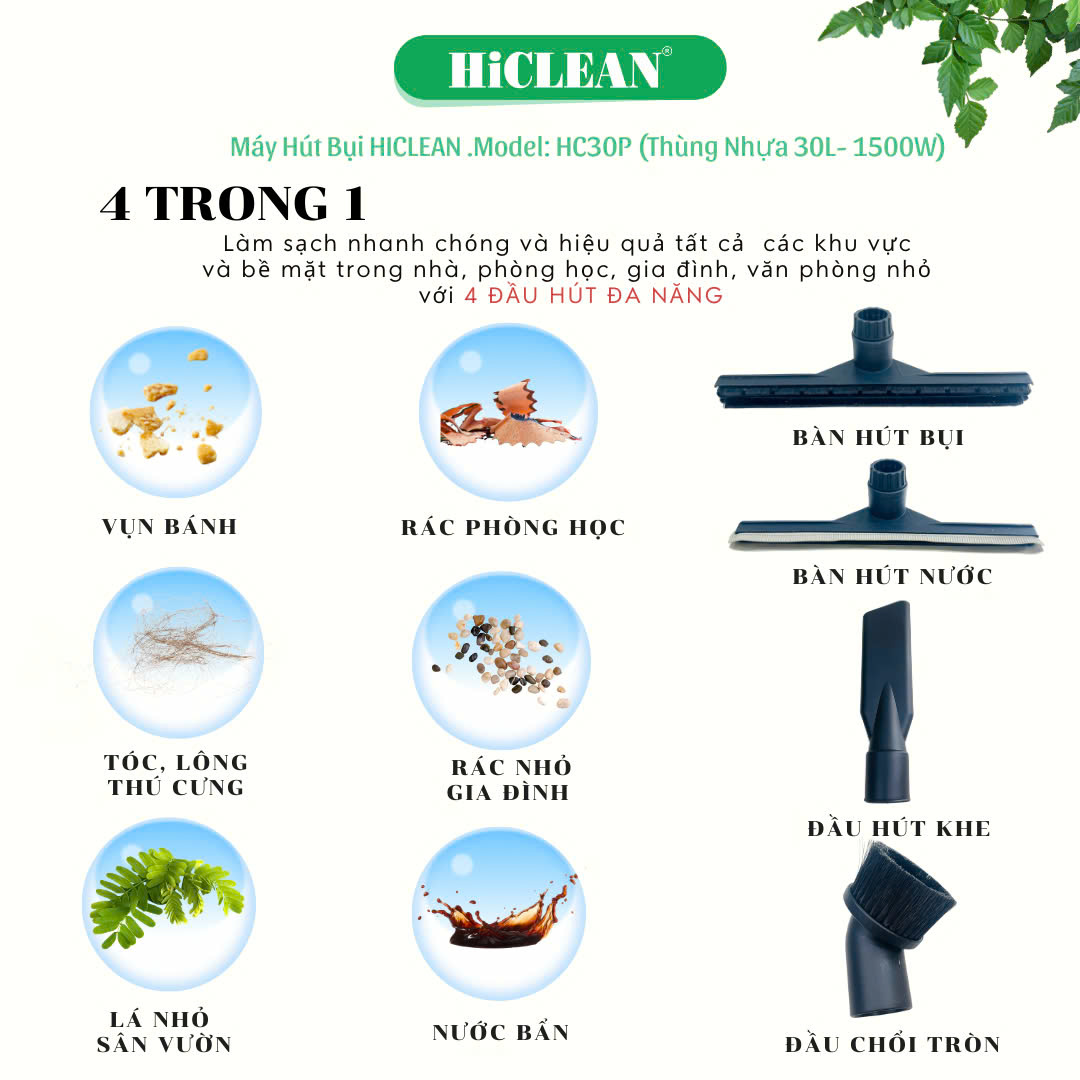 Với tất cả các tính năng vượt trội của mình, Máy hút bụi công nghiệp HiClean HC 30P là một trong những lựa chọn tốt nhất cho việc vệ sinh các bề mặt công nghiệp và thương mại. Nó không chỉ là một thiết bị hút bụi khô thông thường, mà còn có thể hút nước và các bụi bẩn công nghiệp. Đặc biệt, với công suất nhỏ, máy hút bụi HiClean HC 30P là một sự lựa chọn tuyệt vời cho các doanh nghiệp vừa và nhỏ.
