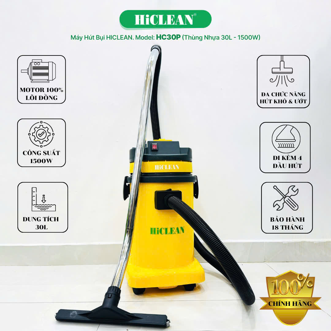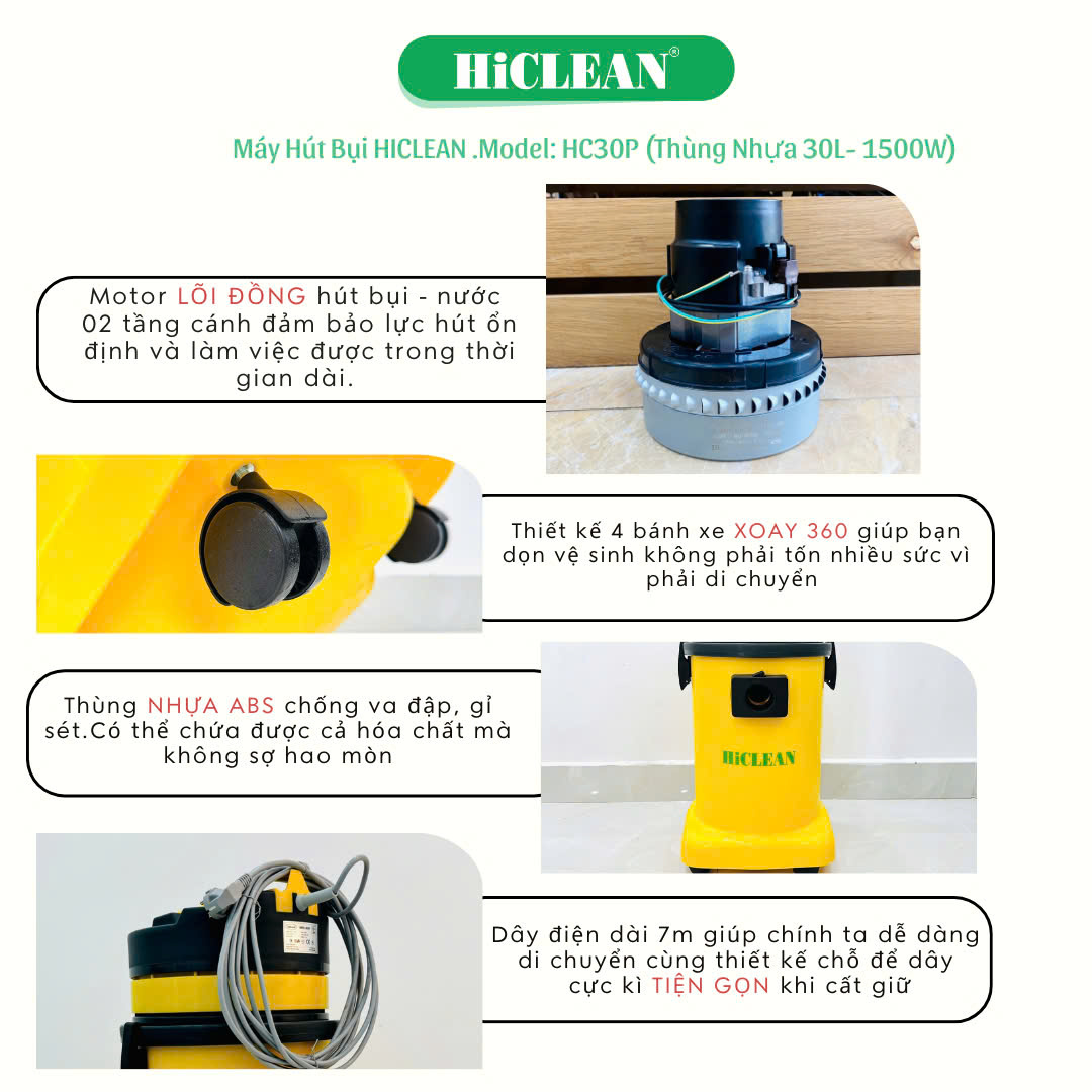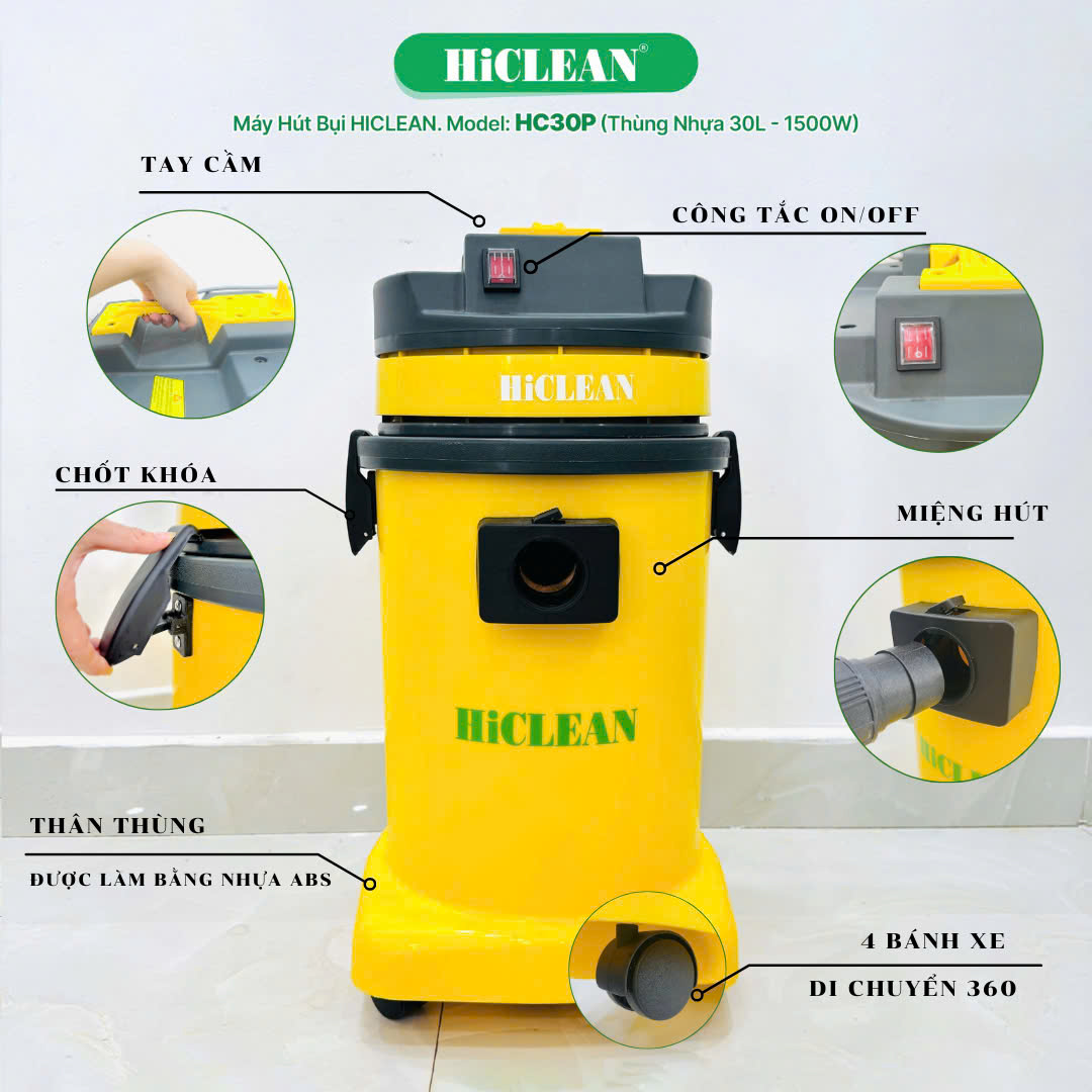Máy hút bụi công nghiệp HiClean HC 30P - Giải pháp tối ưu cho công việc hút bụi