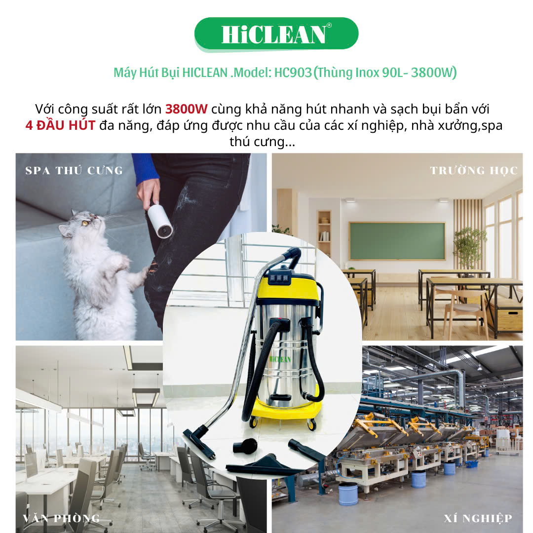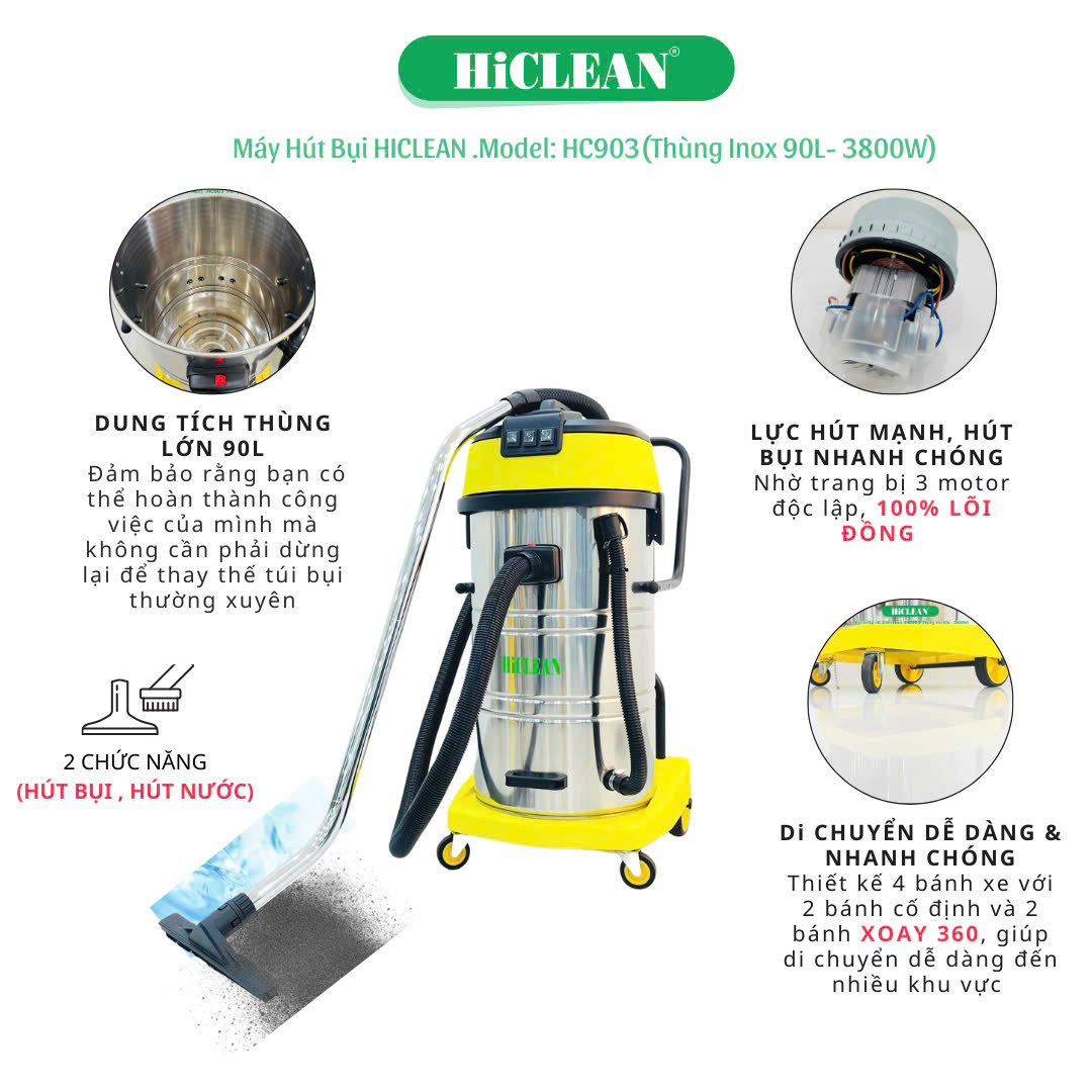 Máy hút bụi công nghiệp HiClean HC 903 - Giải pháp hoàn hảo cho việc làm sạch công nghiệp