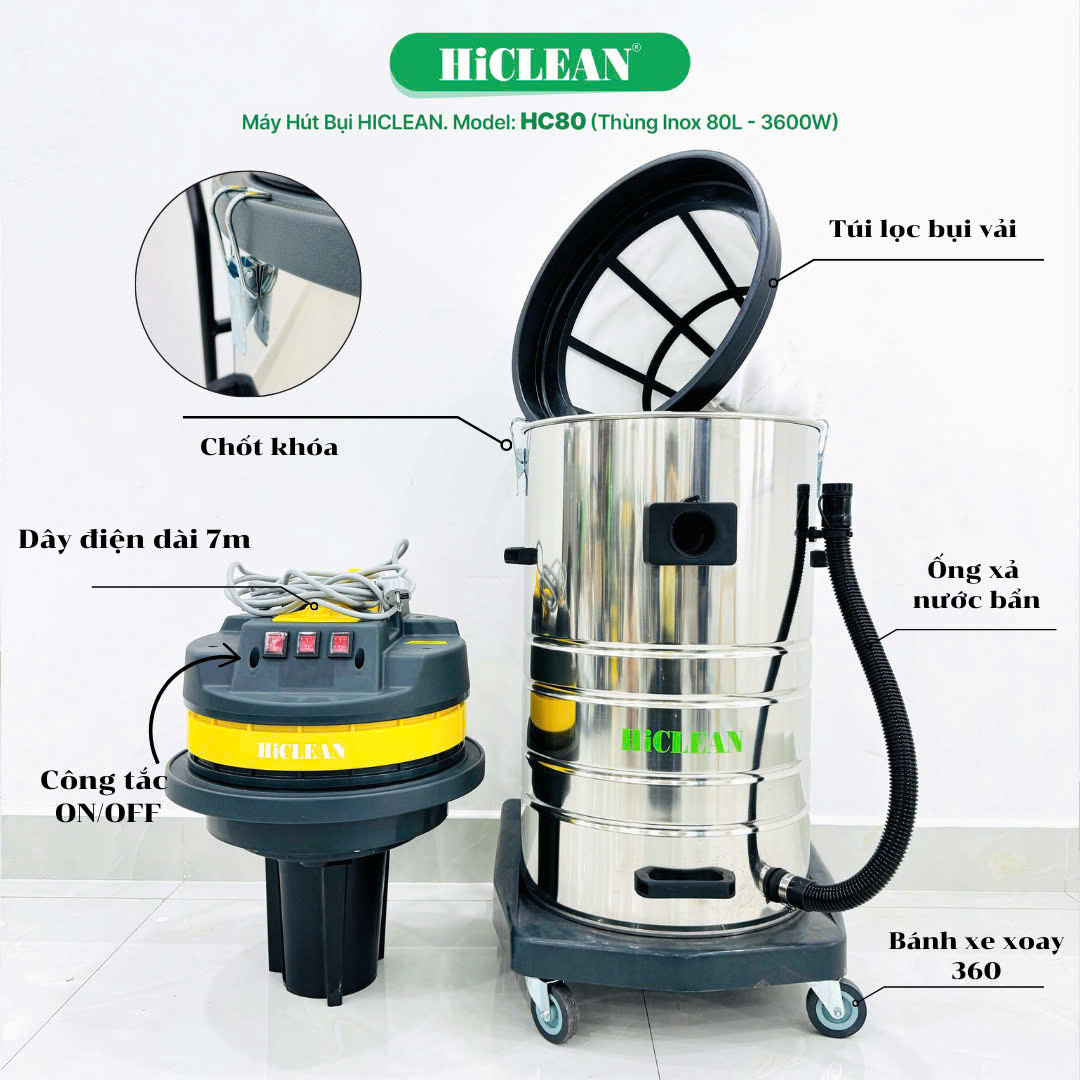 Máy hút bụi công nghiệp HiClean HC80 - Sức mạnh và hiệu quả đáng kinh ngạc