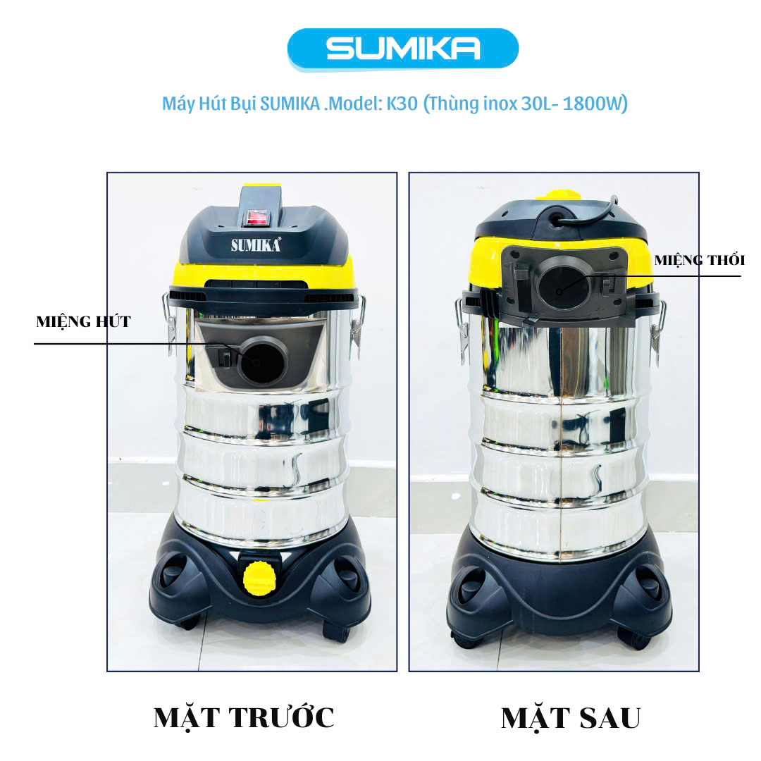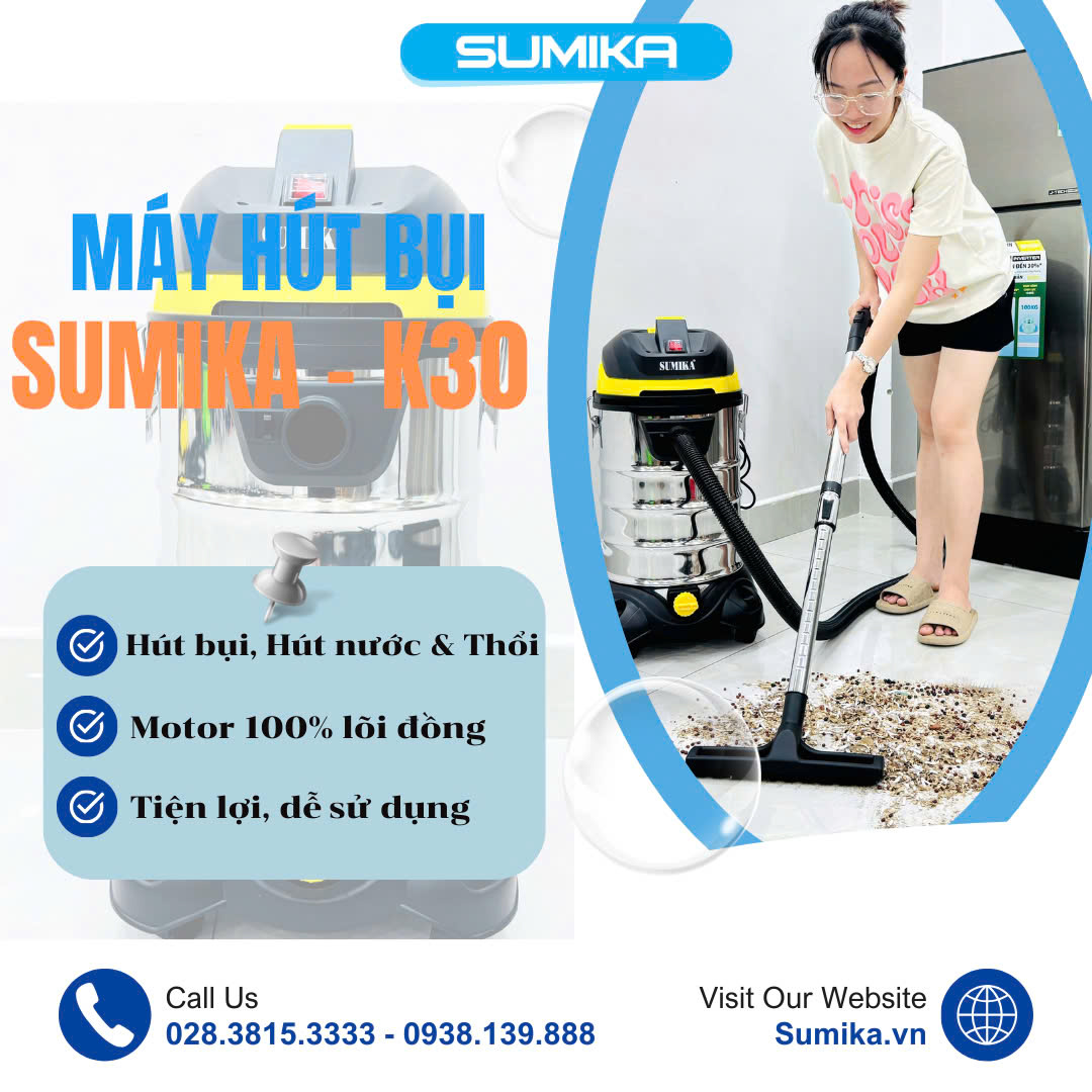 Máy hút bụi SUMIKA K30 được thiết kế nhỏ gọn, dễ dàng di chuyển và sử dụng. Bạn có thể sử dụng máy để hút bụi trong nhà, hút các mảnh vụn trong ô tô, ghế sofa, và cả những bụi bẩn công nghiệp. Máy hút bụi SUMIKA K30 sử dụng motor có lõi đồng 100% của Italy, đảm bảo sức mạnh và độ bền của sản phẩm.
