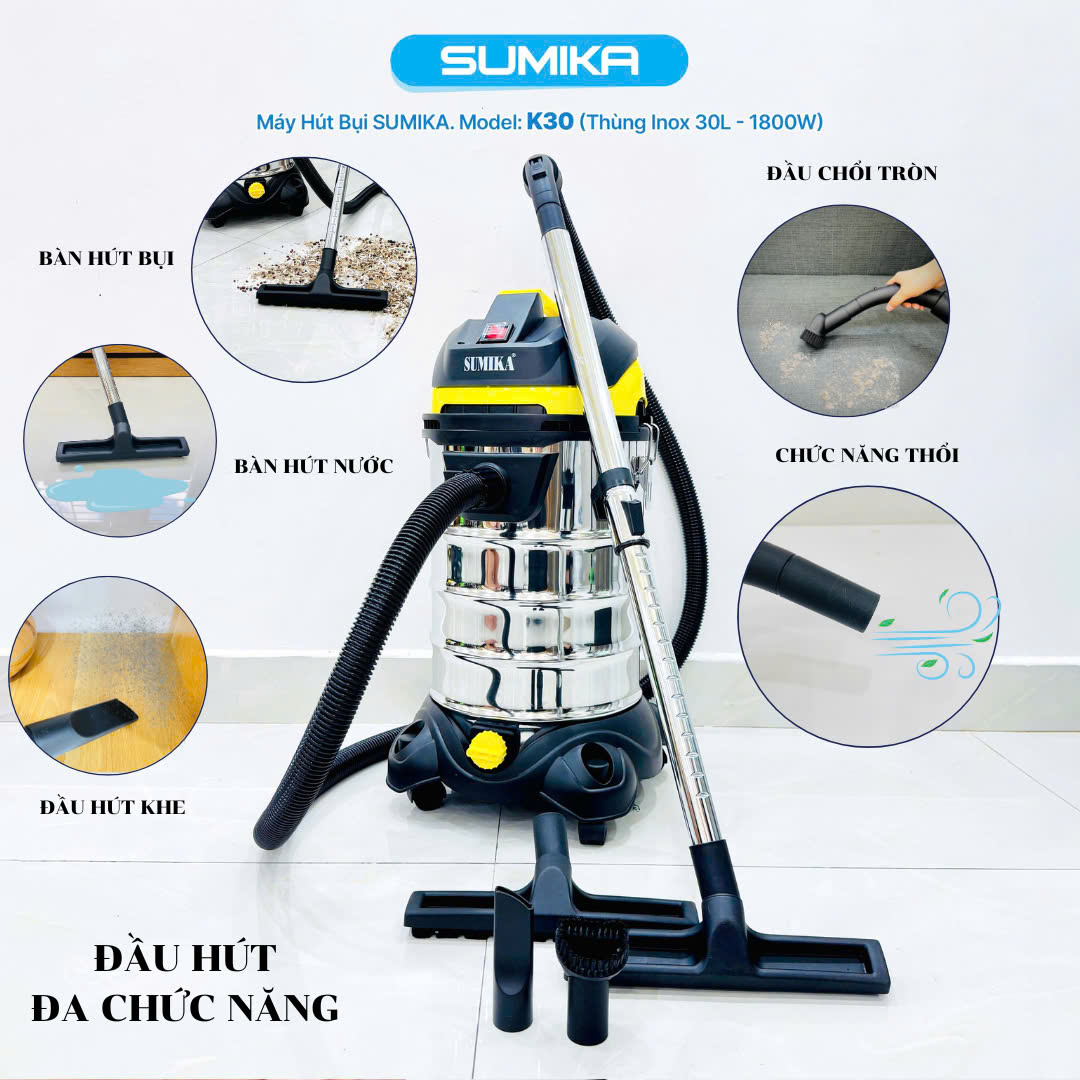 Nếu bạn đang tìm kiếm một chiếc máy hút bụi đa năng, SUMIKA K30 là một lựa chọn tuyệt vời. Với công suất 1800W và lưu lượng khí 110L/S, máy có thể hút sạch bụi bẩn một cách nhanh chóng và hiệu quả. Đặc biệt, máy có thể hút cả khô lẫn ướt, nên bạn không cần phải lo lắng về việc sử dụng máy trong những ngày mưa hay khi vệ sinh nhà tắm. Với dung tích thùng chứa 30L, bạn không cần phải thường xuyên thay thế túi lọc, tiết kiệm thời gian và công sức của bạn.