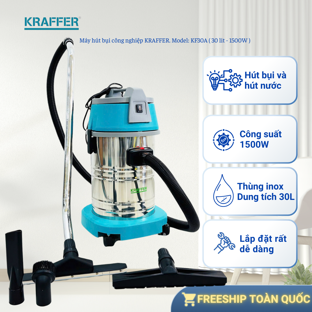 Máy hút bụi khô ướt Kraffer KF30A - Thiết bị công nghiệp vừa sức