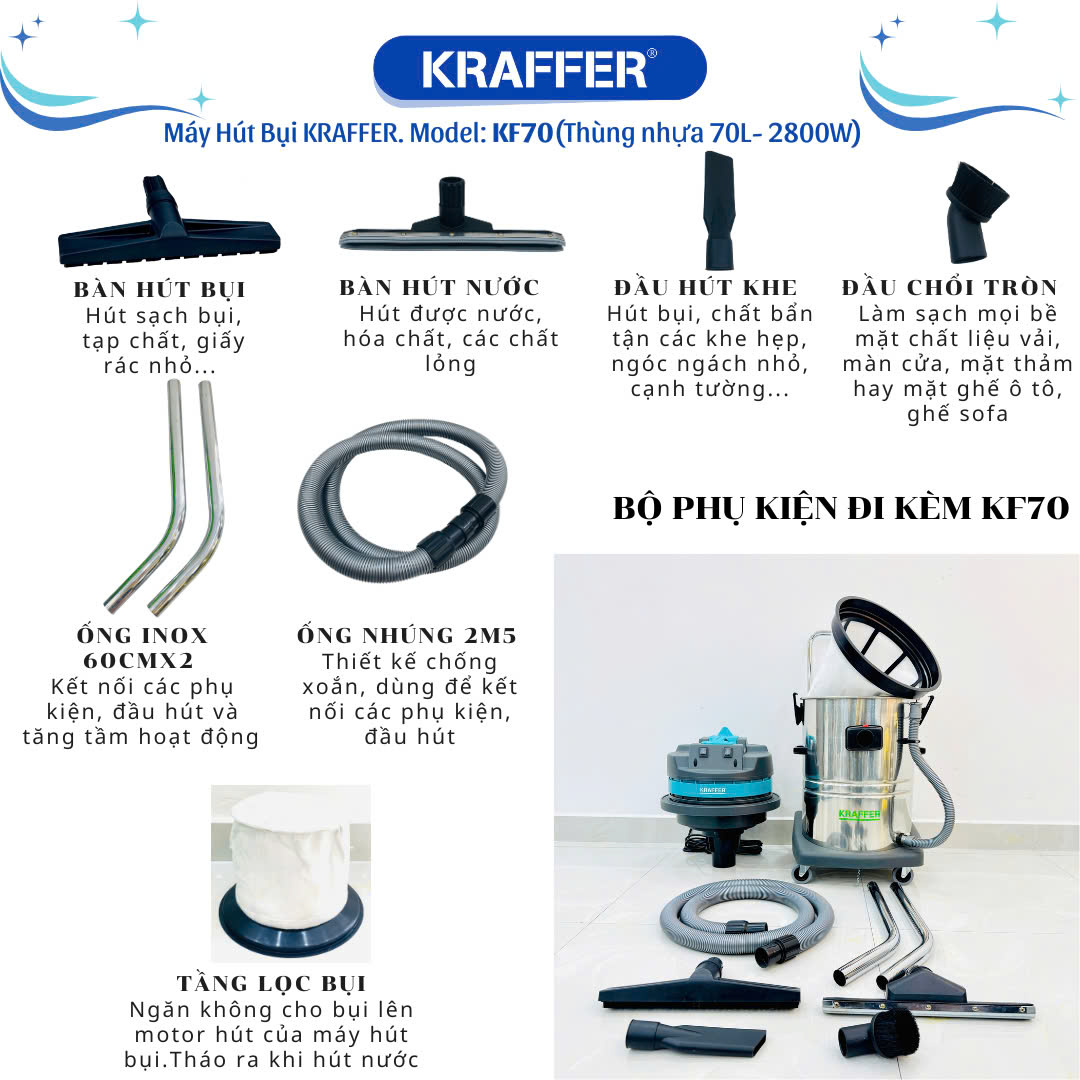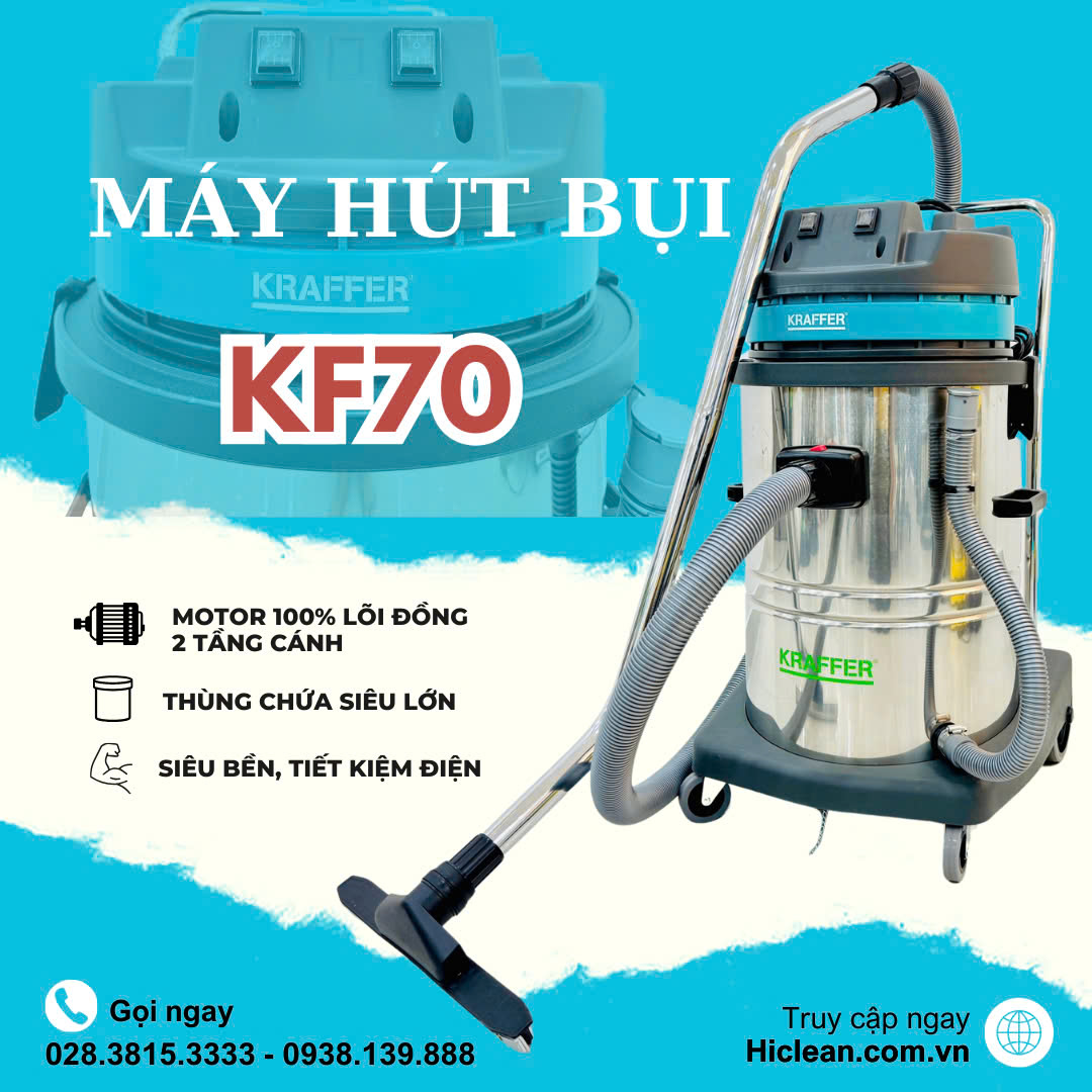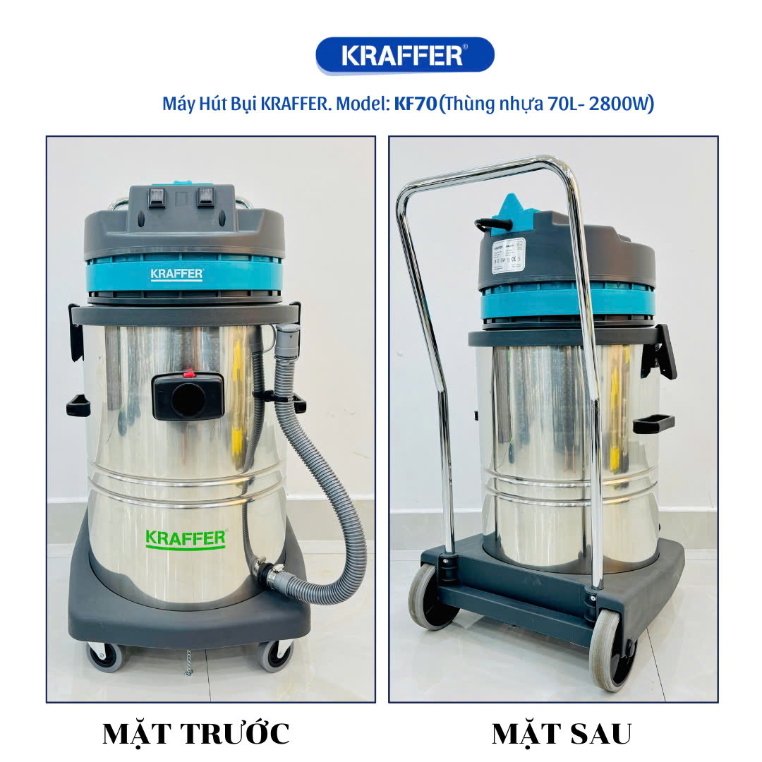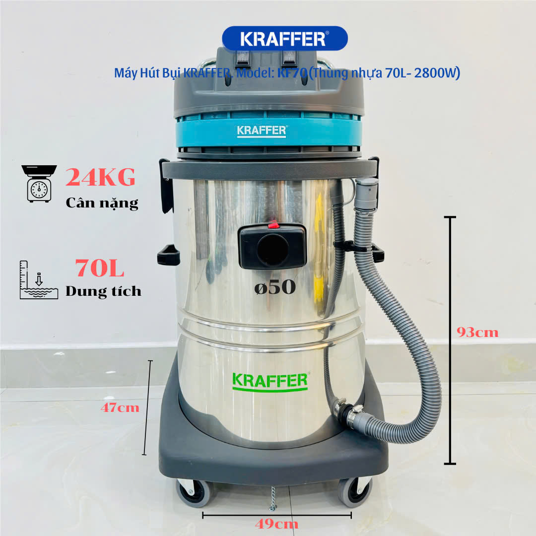 Nếu bạn đang tìm kiếm một chiếc máy hút bụi công nghiệp, KRAFFER KF70 là một lựa chọn tuyệt vời. Với công suất 2800W và lưu lượng khí 106L/S, máy có thể hút sạch bụi bẩn một cách nhanh chóng và hiệu quả. Đặc biệt, máy có thể hút cả khô lẫn ướt, nên bạn không cần phải lo lắng về việc sử dụng máy trong những ngày mưa hay khi vệ sinh sàn nhà. Với dung tích thùng chứa 70L, bạn không cần phải thường xuyên thay thế túi lọc, tiết kiệm thời gian và công sức của bạn.