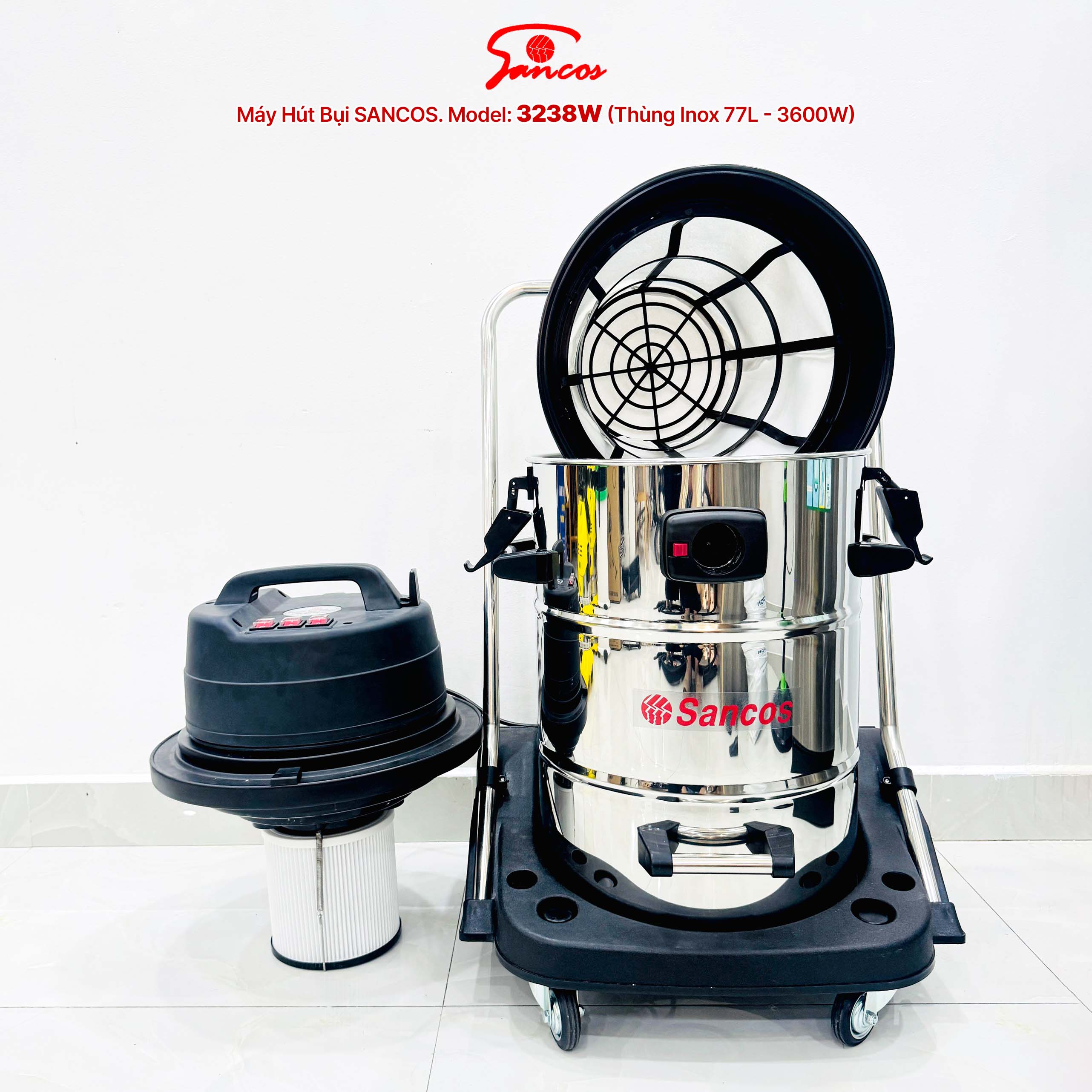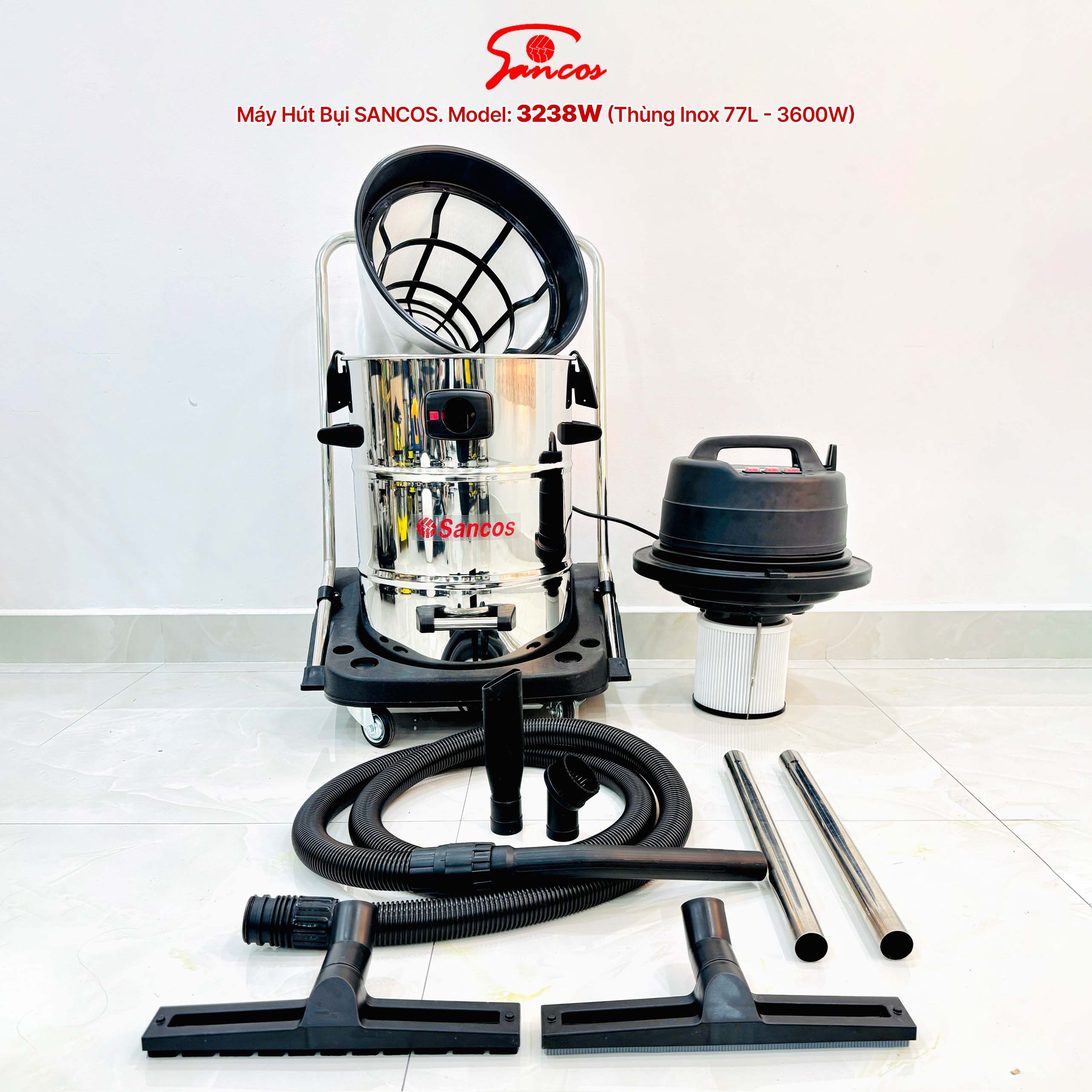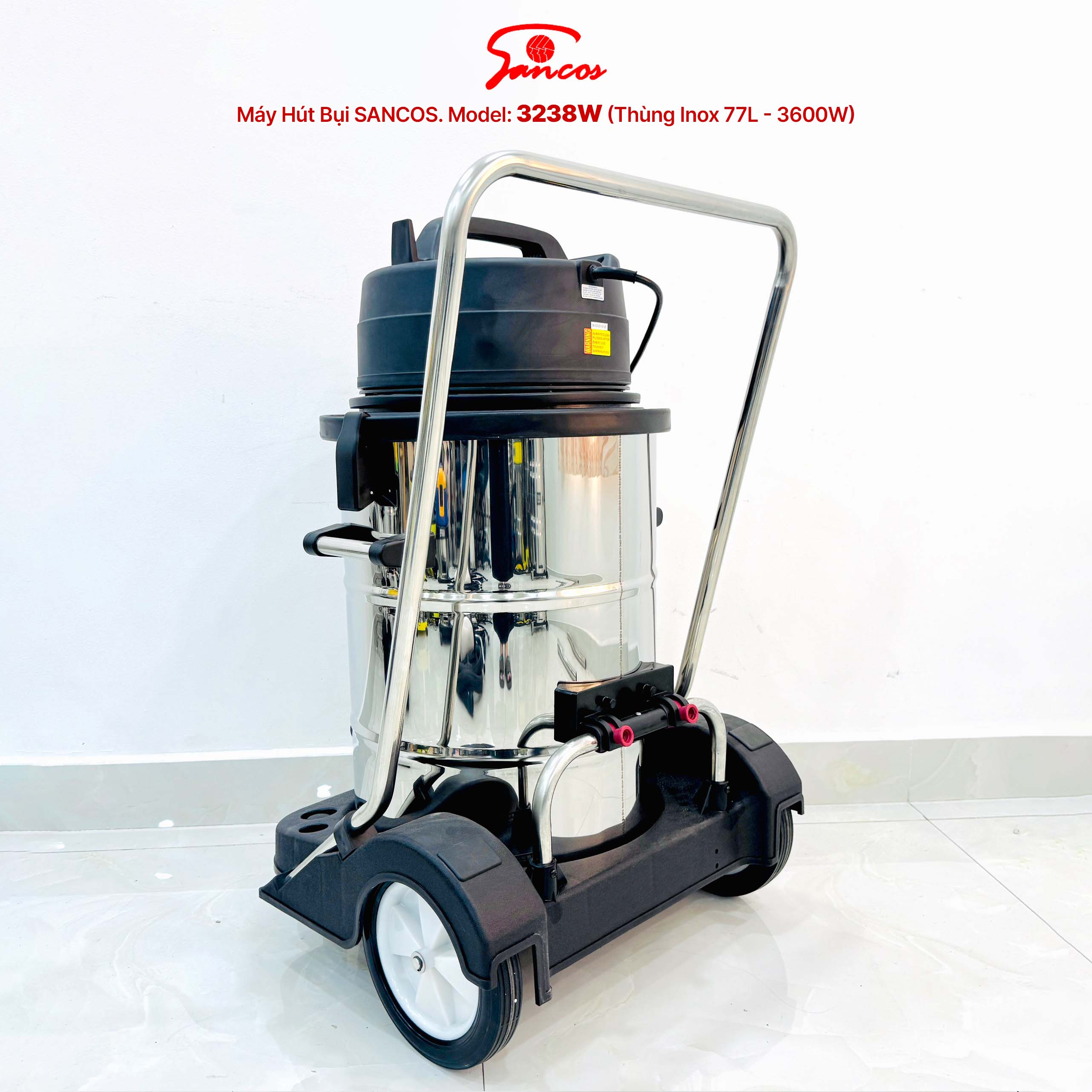 Máy hút bụi – nước công nghiệp SANCOS 3238 sử dụng 3 moto, công nghệ của Anh Quốc, với công suất lên tới 3600W là một trong những sản phẩm hút bụi tốt nhất hiện nay, siêu bền và tiết kiệm điện.