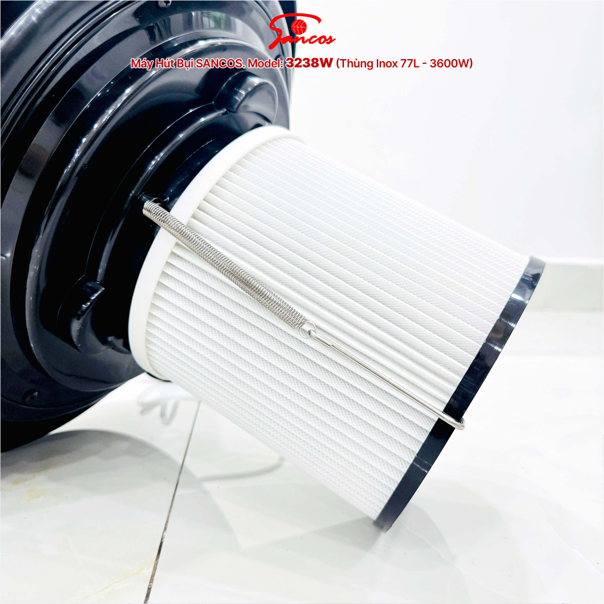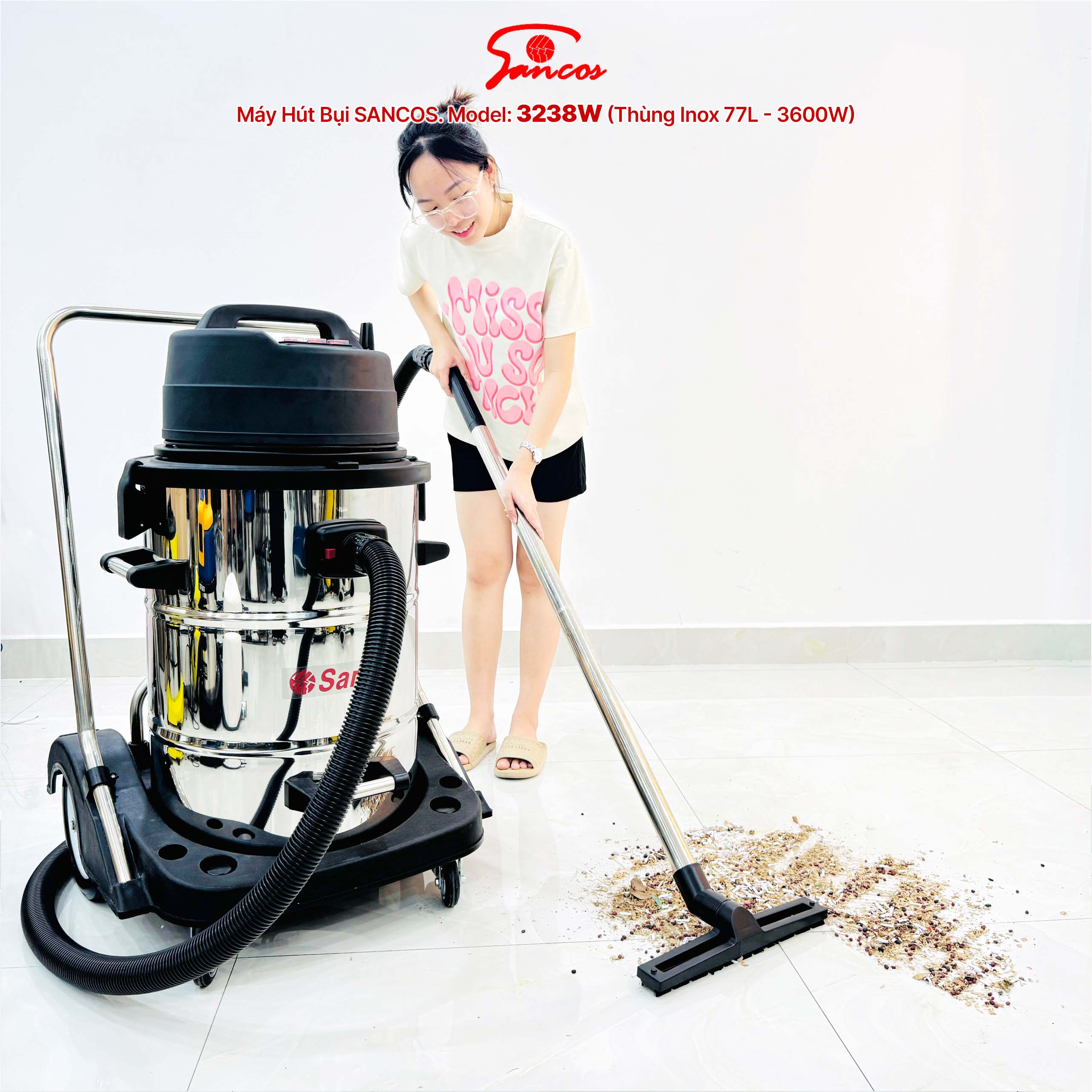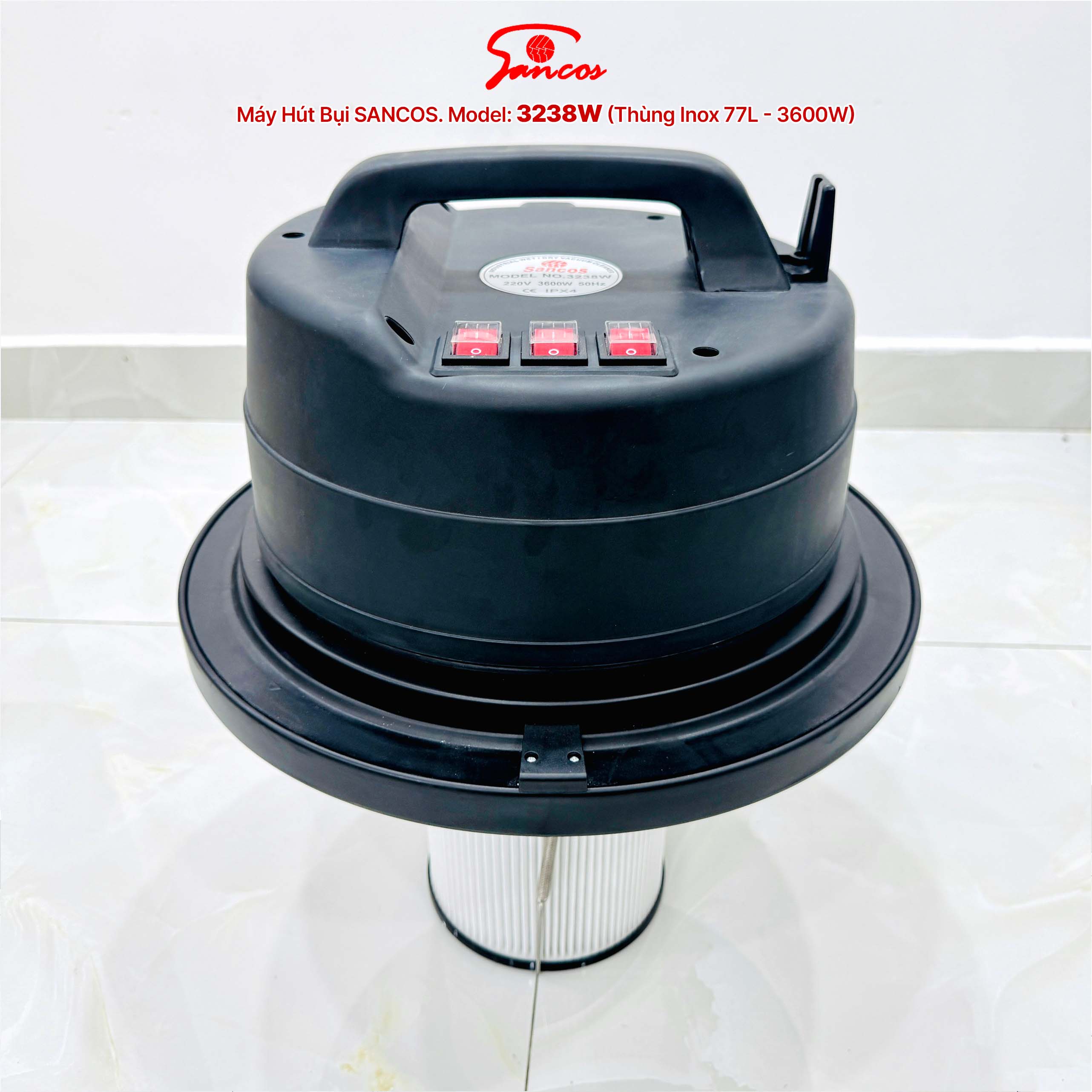 Máy hút bụi – nước công nghiệp SANCOS 3238 sử dụng 3 moto, công nghệ của Anh Quốc, với công suất lên tới 3600W là một trong những sản phẩm hút bụi tốt nhất hiện nay, siêu bền và tiết kiệm điện.