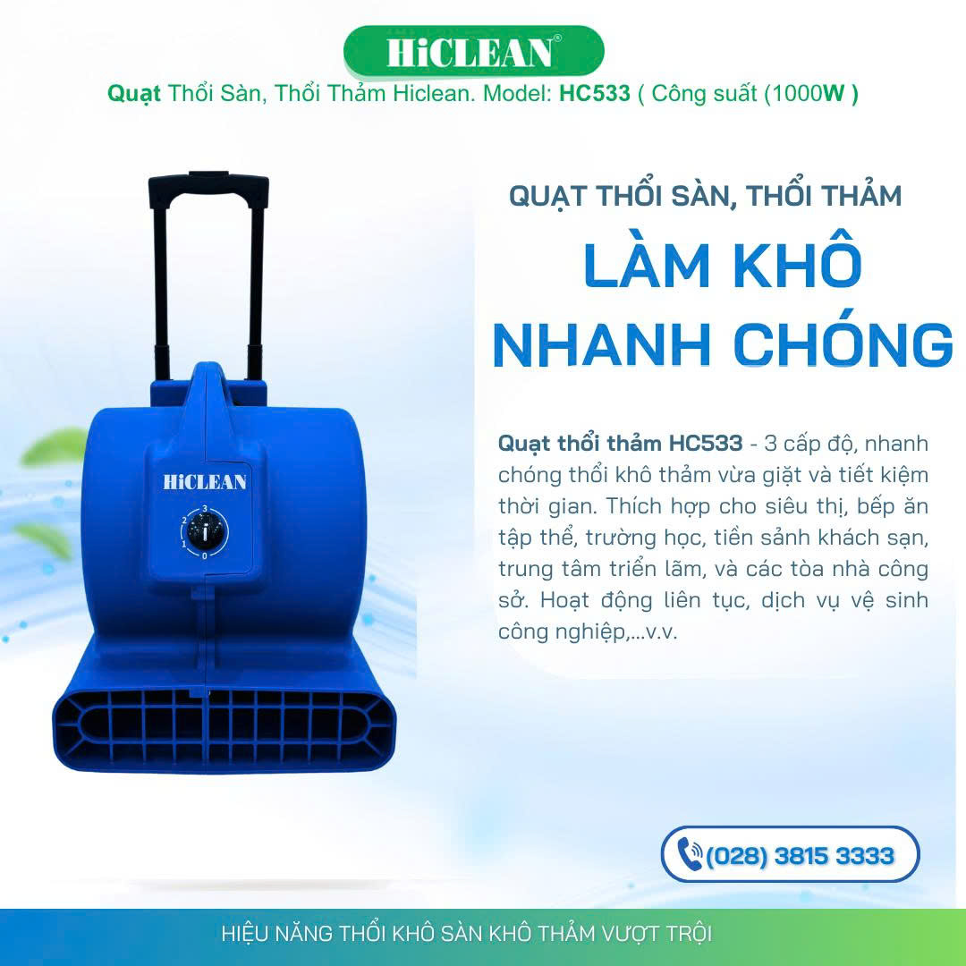 Quạt thổi sàn, thổi thảm HiClean HC533 là một sản phẩm đa năng và tiện ích trong việc làm sạch các bề mặt sàn nhà, đặc biệt là thảm. Với công suất 1000W và gió tự nhiên, quạt thổi sàn HiClean HC533 có khả năng thổi mạnh và đều các hạt bụi và rác thải trên sàn nhà. Sản phẩm này được thiết kế với các tính năng hiện đại, giúp cho việc làm sạch nhà cửa trở nên dễ dàng và thuận tiện hơn.