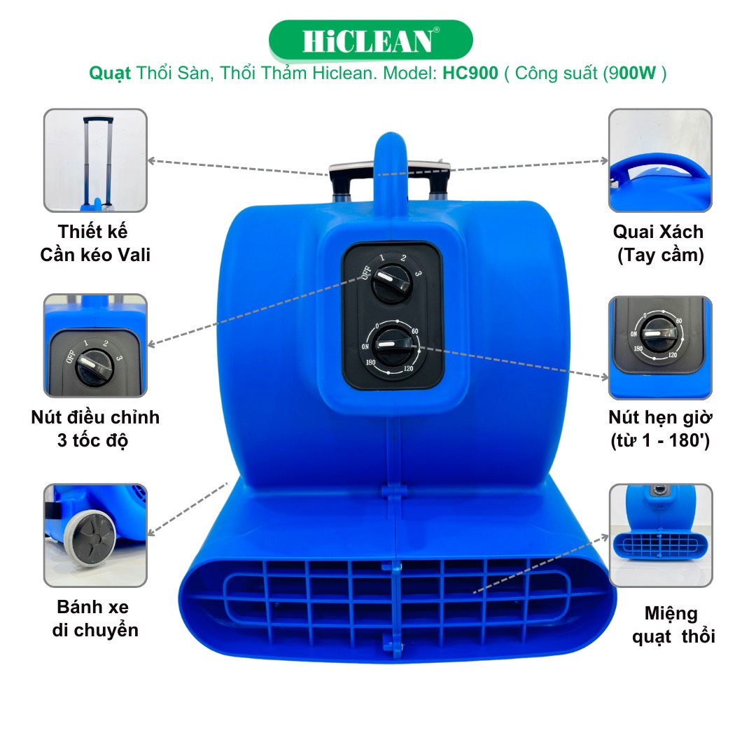 Quạt thổi sàn, thổi thảm HiClean HC900 là một sản phẩm đa năng và tiện ích trong việc làm sạch các bề mặt sàn nhà, đặc biệt là thảm. Với công suất 900W và gió tự nhiên, quạt thổi sàn HiClean HC900 có khả năng thổi mạnh và đều các hạt bụi và rác thải trên sàn nhà. Sản phẩm này được thiết kế với các tính năng hiện đại, giúp cho việc làm sạch nhà cửa trở nên dễ dàng và thuận tiện hơn.