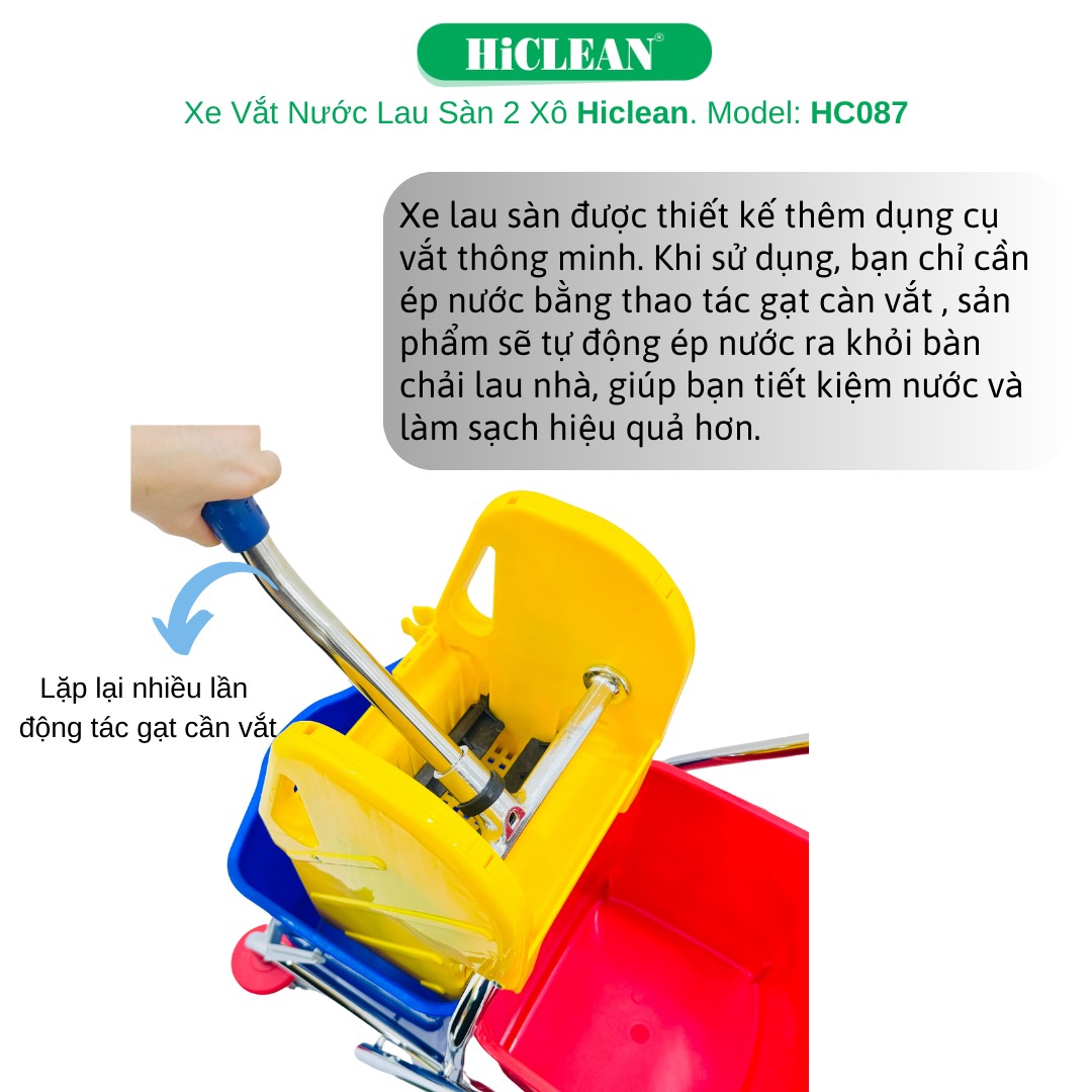 Sản phẩm xe ép nước lau nhà 2 xô HiClean HC 087 được thiết kế với tính năng vượt trội giúp bạn làm sạch nhà cửa một cách nhanh chóng và hiệu quả. Với khả năng ép nước mạnh mẽ, sản phẩm này giúp bạn làm sạch bề mặt nhanh hơn và sạch hơn so với việc dùng tay lau.