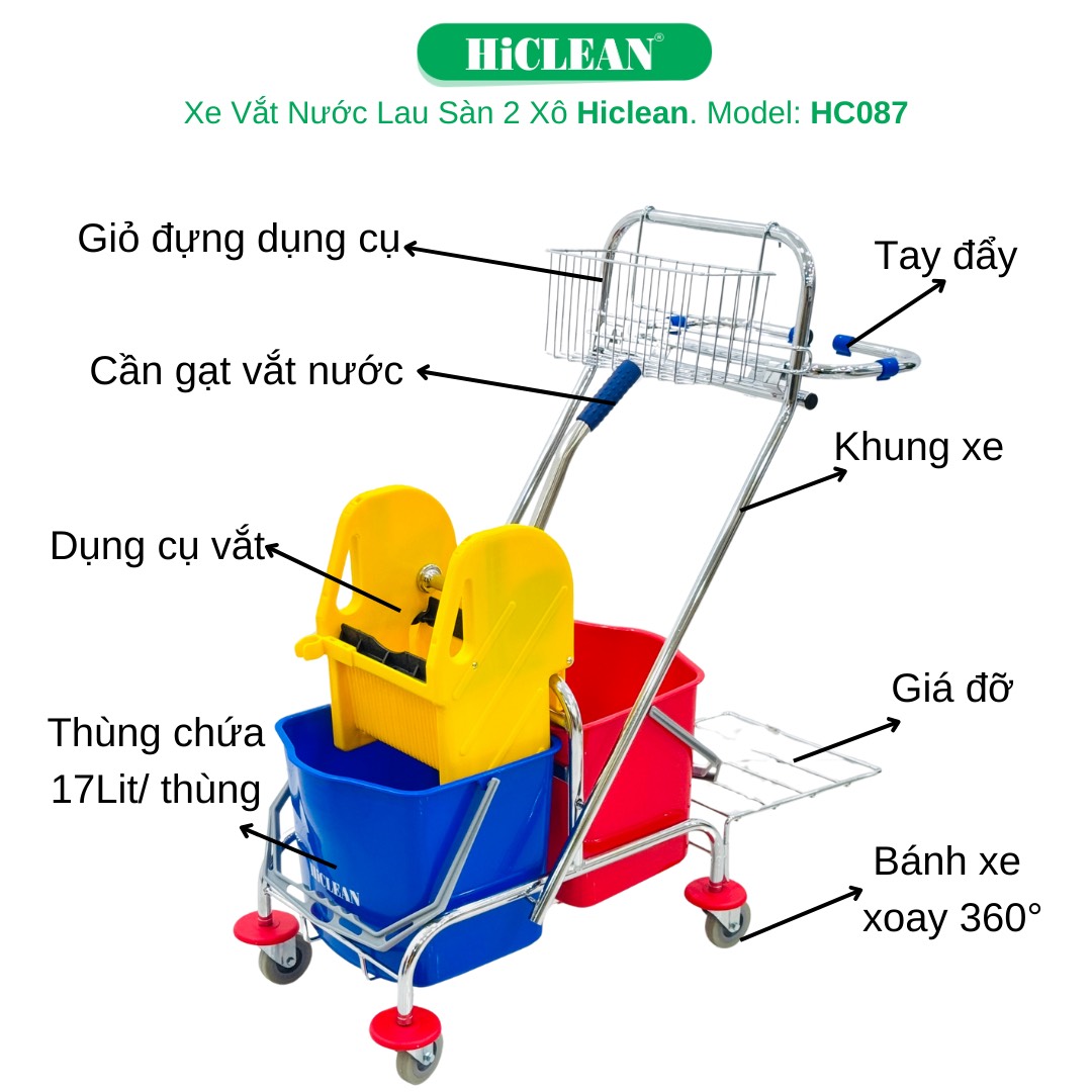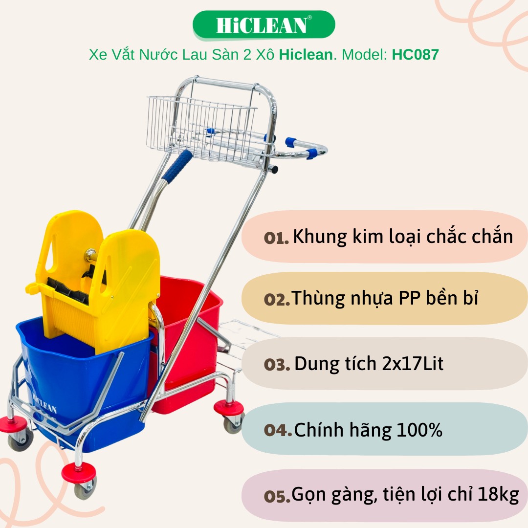 Xe ép nước lau nhà 2 xô HiClean HC 087 là sản phẩm chất lượng cao của thương hiệu nổi tiếng HiClean. Được thiết kế dạng xe đẩy với hai xô có thể chứa được lượng nước lớn, sản phẩm này sẽ giúp bạn dễ dàng làm sạch các khu vực lớn trong ngôi nhà của mình.