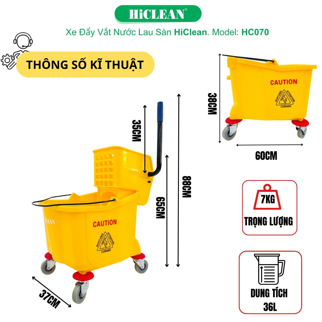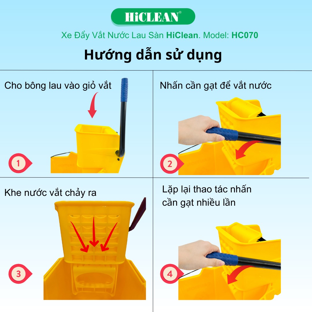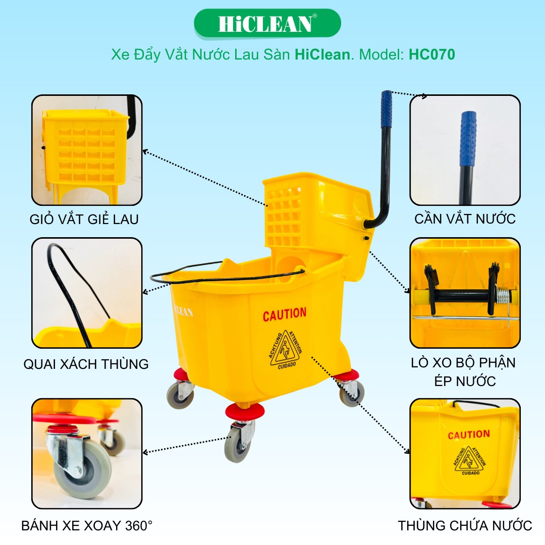 Xe vắt nước 1 xô HiClean HC 070 - Thiết bị giúp bạn làm sạch hiệu quả hơn